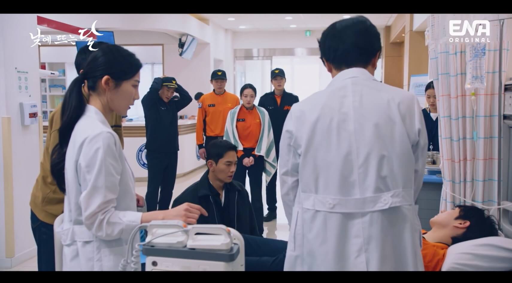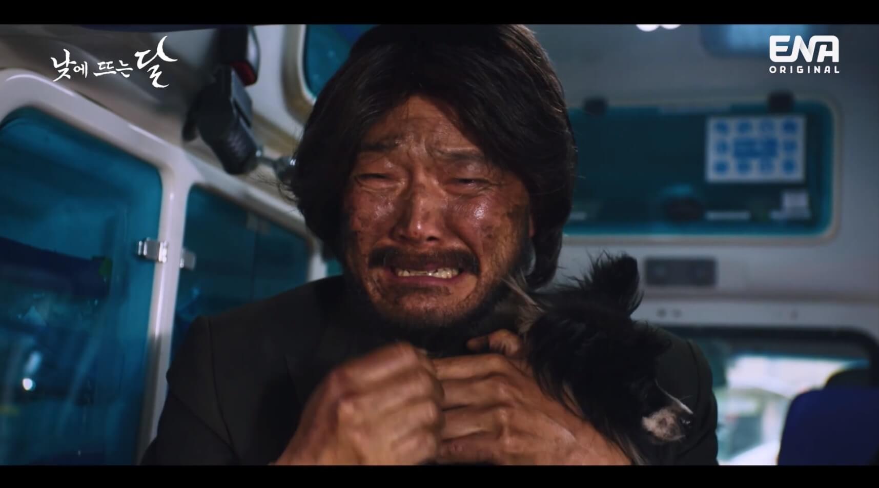 낮에 뜨는 달 | 차에 기절한 채로 한강에 빠진 준오(김영대)를 구하러 뛰어든 영화(표예진). 겨우 준오를 빼내지만, 차에 발이 걸린 영화는 물속에서 의식을 잃는다. 그때 영화 앞에 나타난 익숙