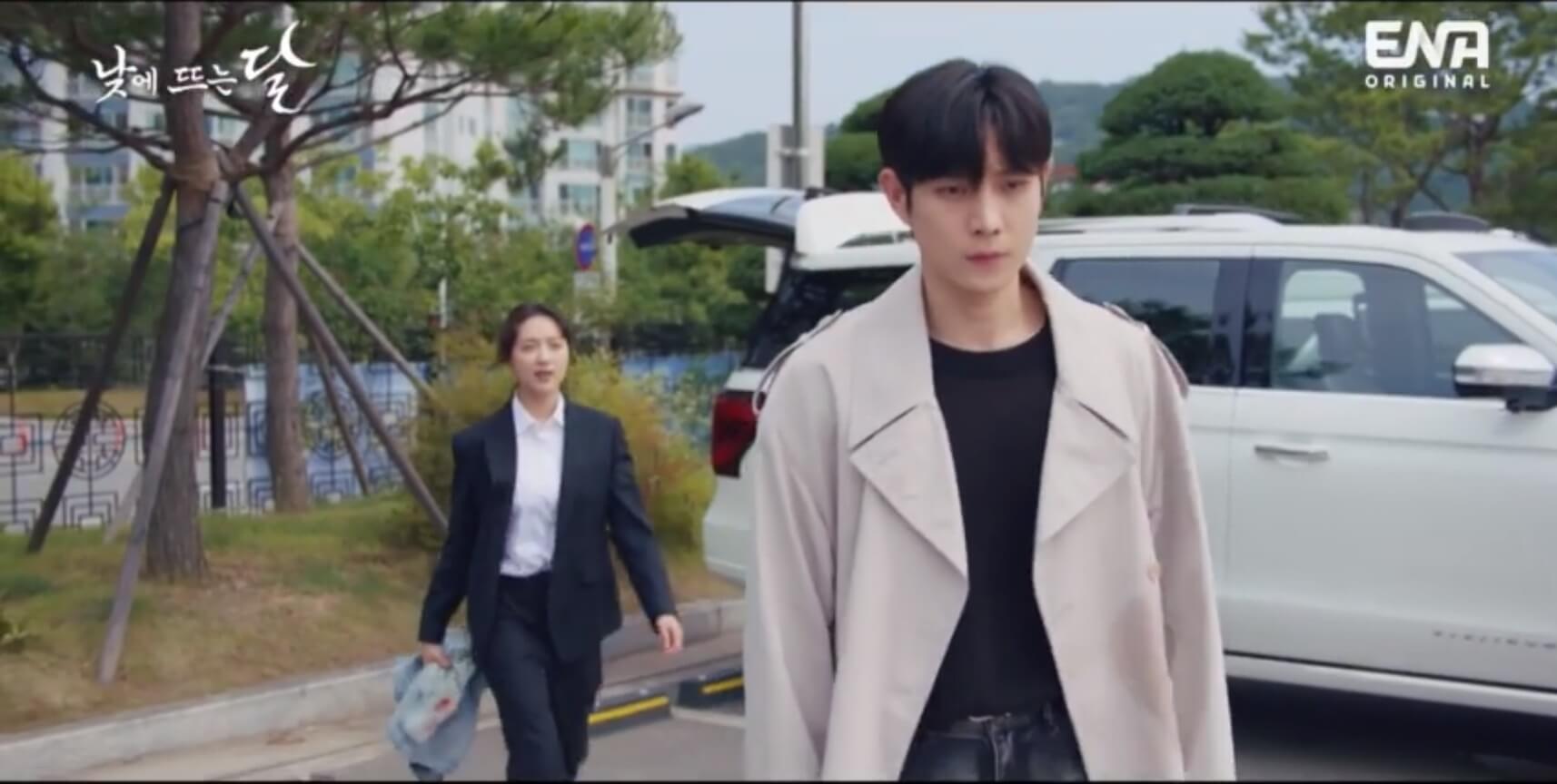 낮에 뜨는 달 | 한준오(김영대)의 경호원 자리를 맡게 된 강영화(표예진). 누군가 자기를 노리고 있다고 느낀 한준오! 강영화까지 노리게 되는데? ENA 수목드라마 〈낮에 뜨는 달〉 | 매주 수.목 밤