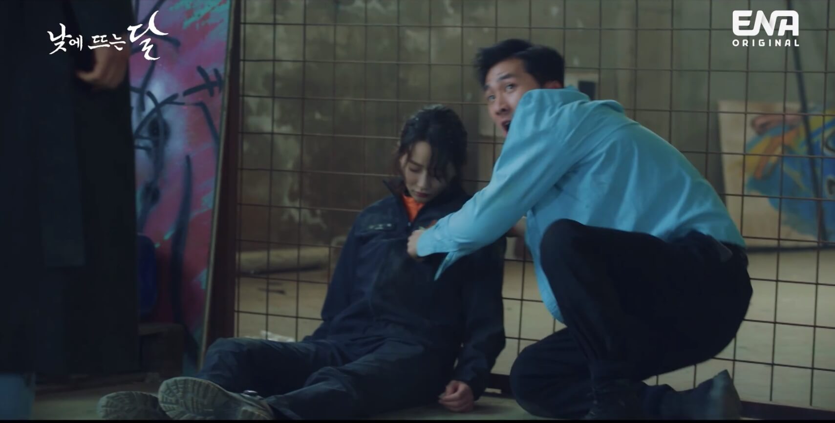 낮에 뜨는 달 | 태주(정헌)의 문자를 받고 사라진 도하(김영대). 준오(김영대)를 찾으러 간 영화(표예진)는 차에 쓰러져있는 준오를 발견한다. 그때 영화를 가격하는 누군가...! ENA 수목드라마 〈