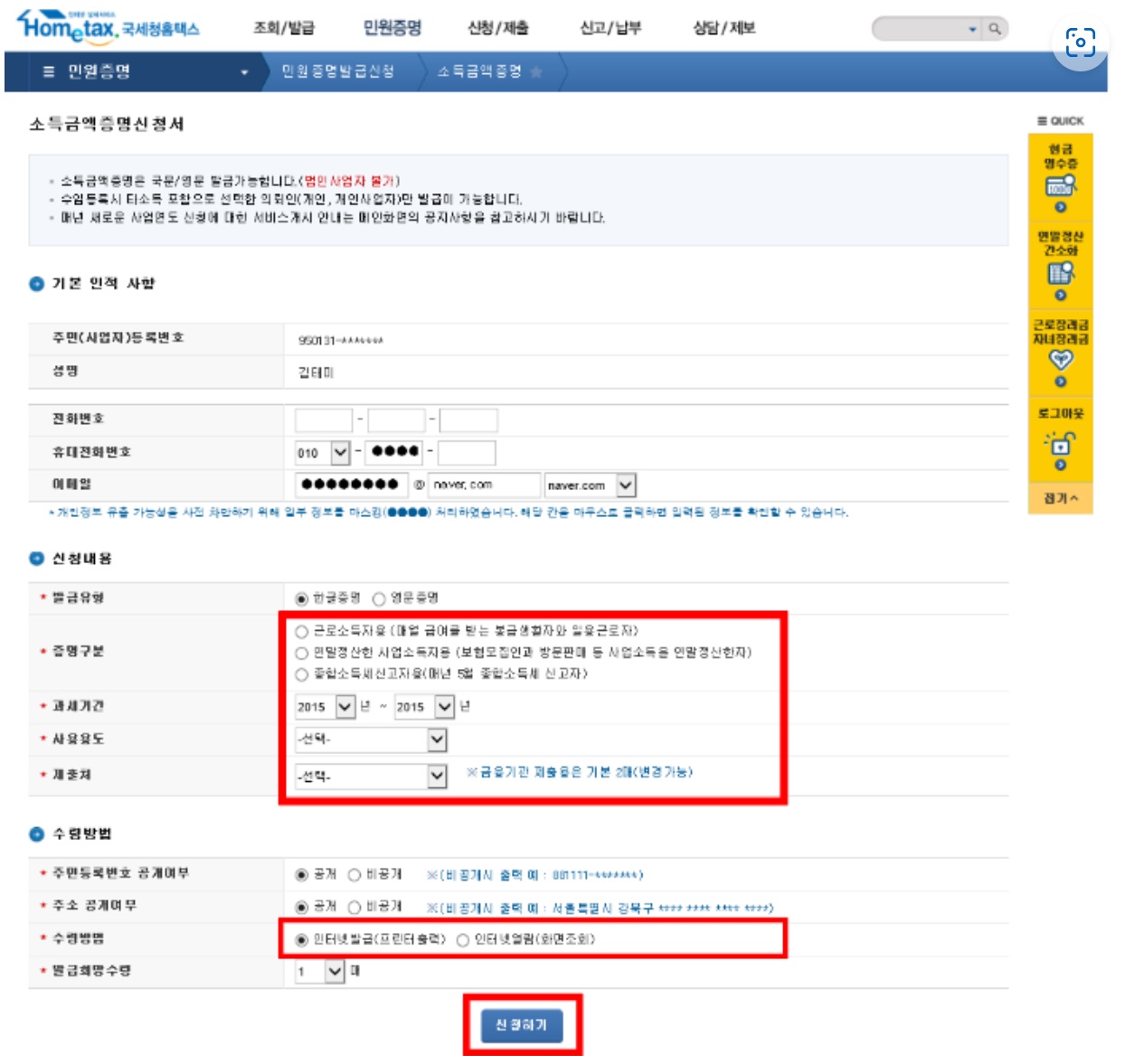 1. 소득증명서 서류 발급 방법