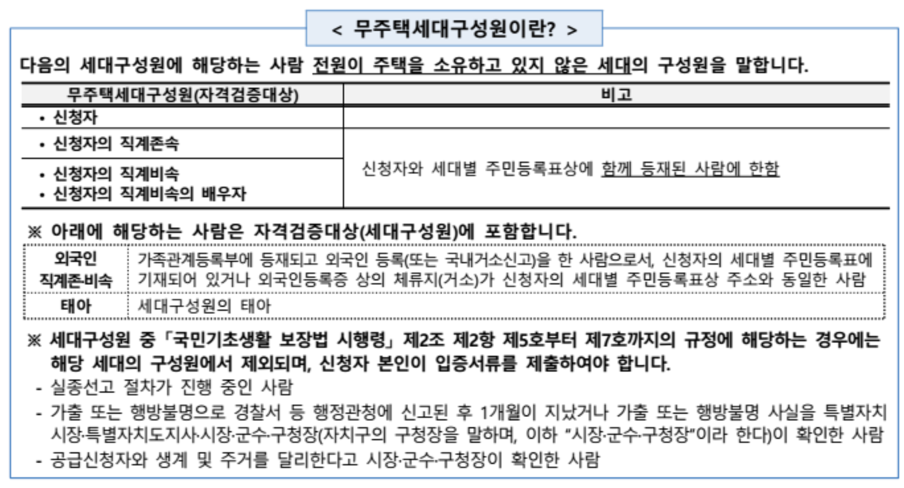 - 세대구성원 전원을 대상으로 국가 및 지자체가 보유하고 있는 공적자료를 조회하여 모집공고일 이후 주택소유 여부를 확인
