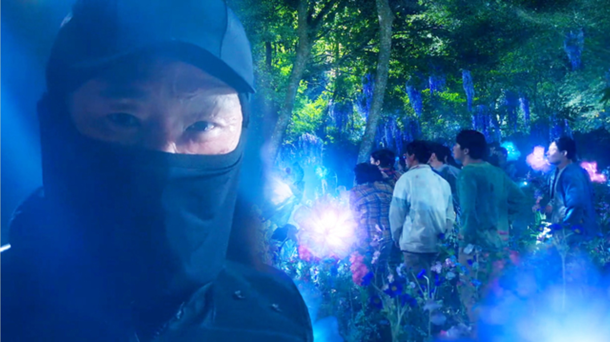 제주 여행 파티에 초대된 행운에 30인은 약물에 중독되어 주용주를 단체 살인하고, 주용주 시신을 조용히 처리하기 위해 버려진 섬으로 이동한다. 섬으로 이동하는 보트 안에서 또 약에 중독된다. 주용주 시신을 묻는데 박쥐가 공격을 하며 사람을 죽이자 30인은 정신없이 도망친다. 멧돼지의 공격을 받아 죽고, 산이 무너지며 죽고 많은 사람이 하나 둘 죽기 시작한다.  긴장된 순간 어둠 속에서 가면을 한 남자가 나타난다.