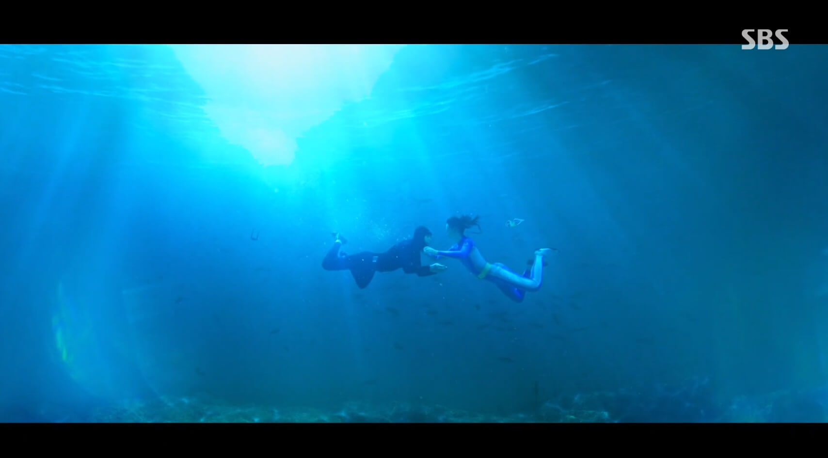 7인의 탈출 | 엄기준(매튜리)과 황정음(금라희)은 바닷속에서 격정적인 키스를 한다. Copyright Ⓒ SBS. All rights reserved. 무단 전재, 재배포 및 AI학습 이용 금지